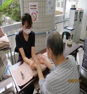 みなさん笑顔で体操している様子やハンドマッサージでリラックスしている様子でテーマの通りなごみのある時間だったと思います。